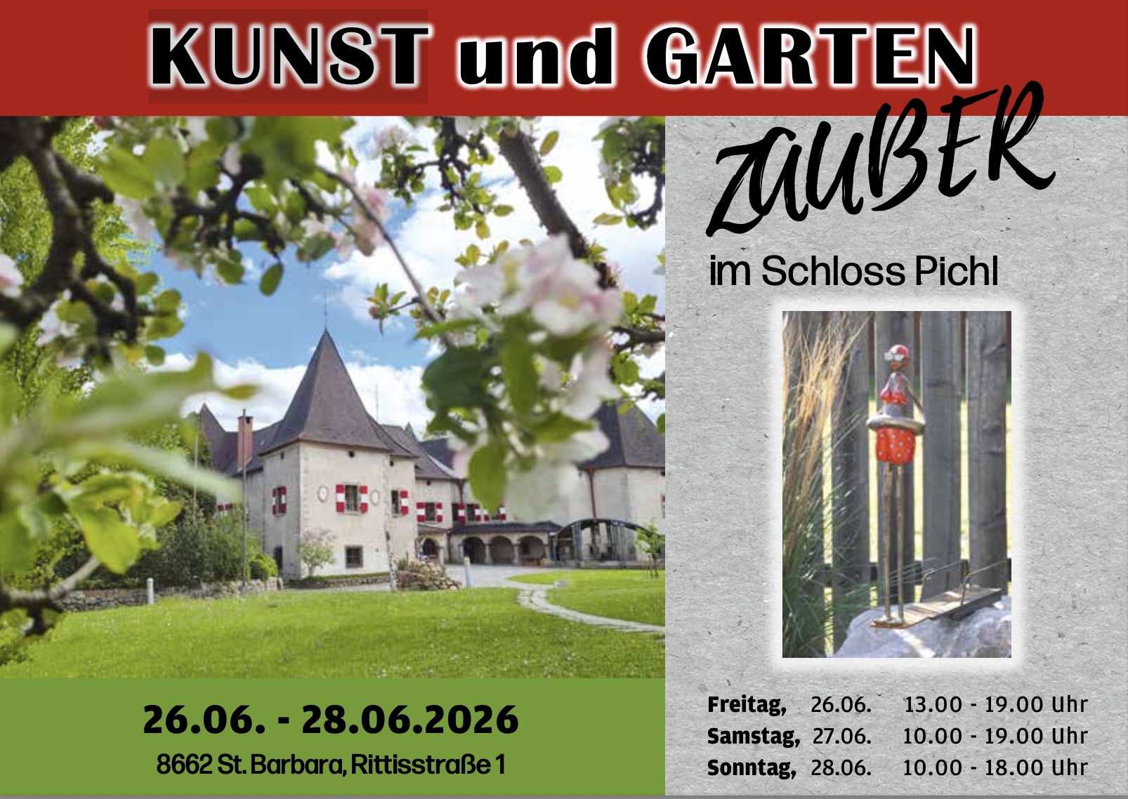 26.-28.06.2026 - Kunst & Gartenzauber Schloss Pichl (Stmk)St. Barbara im Mürztal |